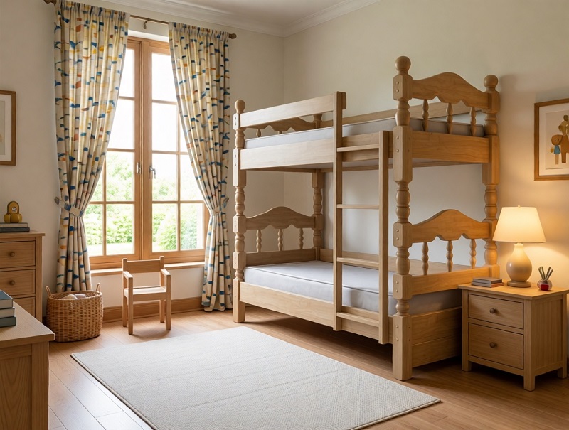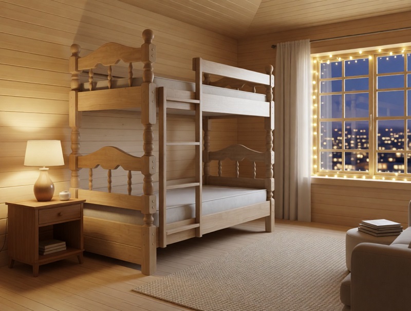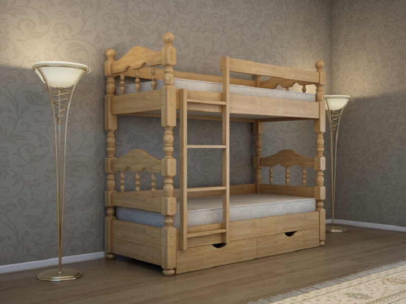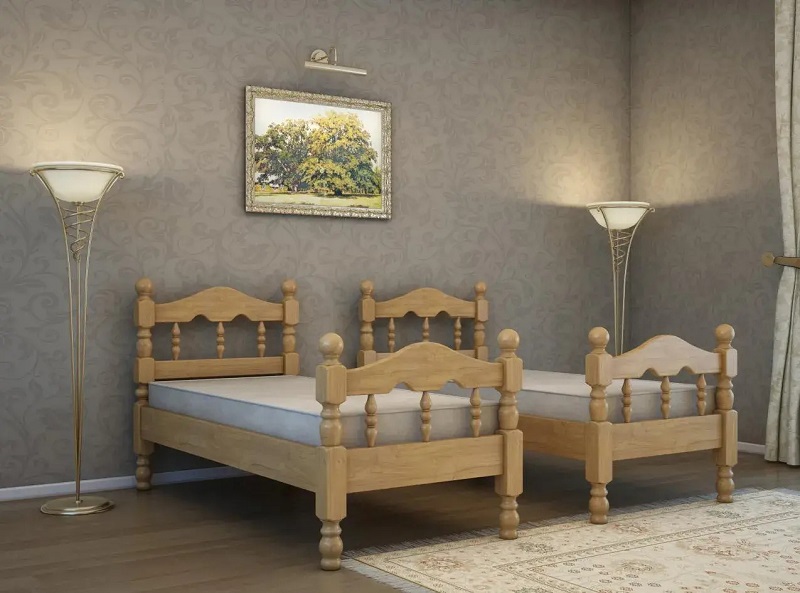 Кровать изготовлена из массива сосны.