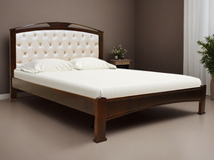 Кровать изготовлена из массива сосны с мягкой вставкой в головной спинке.