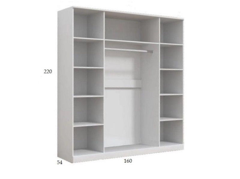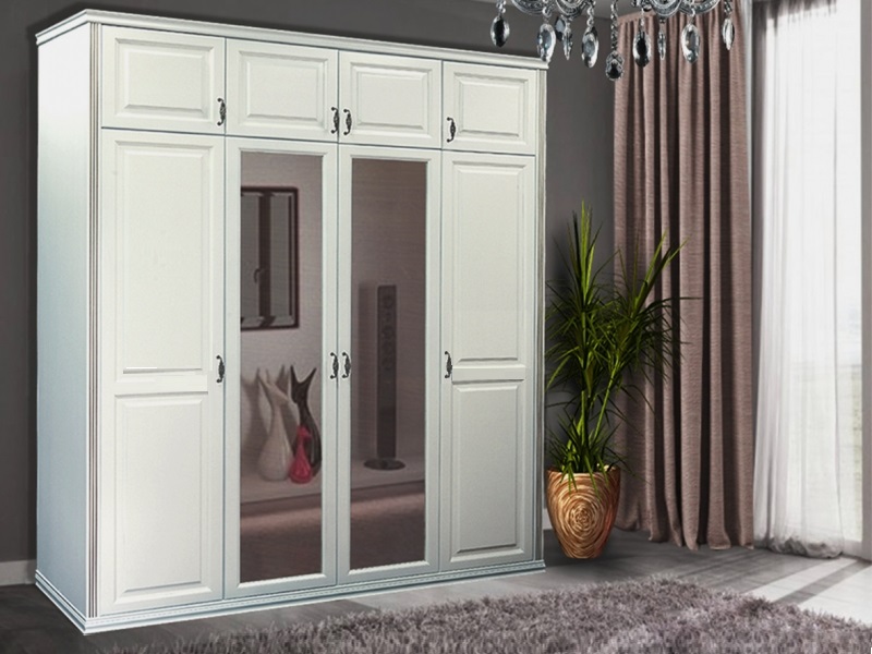 - наполнение 4х ств. шкафа: одна секция -(4 шт. полки), 2 секции-(штанга/полка), одна секция -(4 шт. полки)